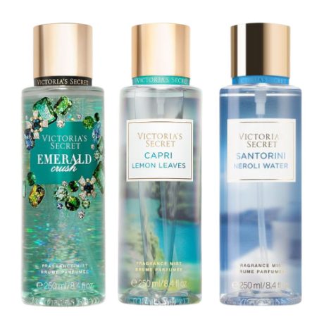 VICTORIA’S SECRET EMERALD CRUSH MIST 250ML VICTORIA’S SECRET CAPRI LEMON LEAVES MIST 250ML VICTORIA’S SECRET SANTORINI NEROLI WATER MIST 250