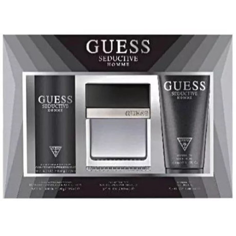 Guess Seductive Homme by Guess is a Amber Woody fragrance for men. Top notes are Pink Pepper, Mandarin Orange and Cardamom; middle notes are Orchid, Violet Leaf and Vetiver; base notes are Amber, Patchouli, Musk and Sandalwood. Guess Seductive gift set includes Eau De Toilette 100 ml , Shower Gel 200 ml and Deodorant 226 ml .