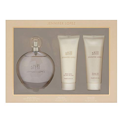 Still by Jennifer Lopez is a Floral fragrance for women. Top notes are Earl Grey Tea, White Pepper, Mandarin Orange, Apple and Rice; middle notes are Jasmine, Lily-of-the-Valley, Freesia, Honeysuckle, Orange Blossom and Rose; base notes are Pepper, Musk, Sandalwood, iris and Amber. JL Still includes Eau De Perfum 100 ml , Body Lotion 75 ml and Shower Gel 75 ml .